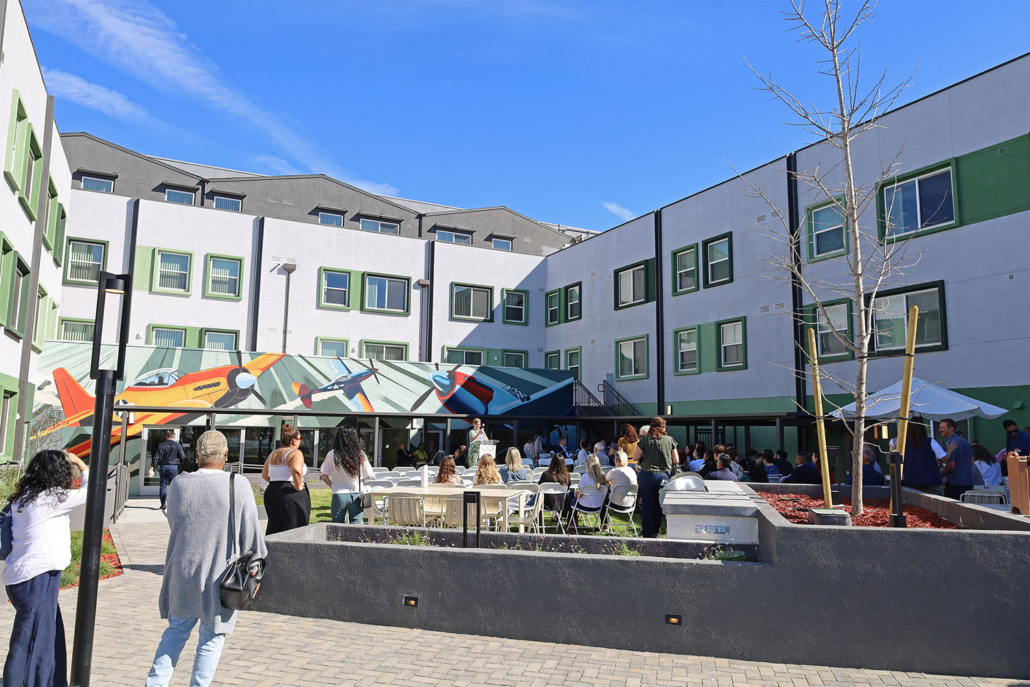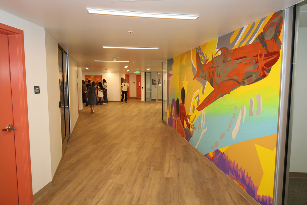 Named in honor of the Tuskegee Airmen, the pioneering African American pilots of World War II, the building features murals throughout the property celebrating their legacy of courage and perseverance. Red Tail Crossing also represents a major milestone as the first development built under California’s AB 721, legislation preventing discriminatory covenants from blocking affordable housing. The project site was previously subject to a restrictive covenant dating back to the 1940s that prohibited multifamily housing and excluded Jews and people of color.