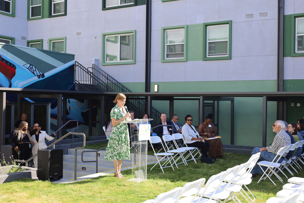 Karen Davis, Vice President and Loan Officer at Century Housing, spoke during the ribbon-cutting ceremony about the importance of these partnerships.