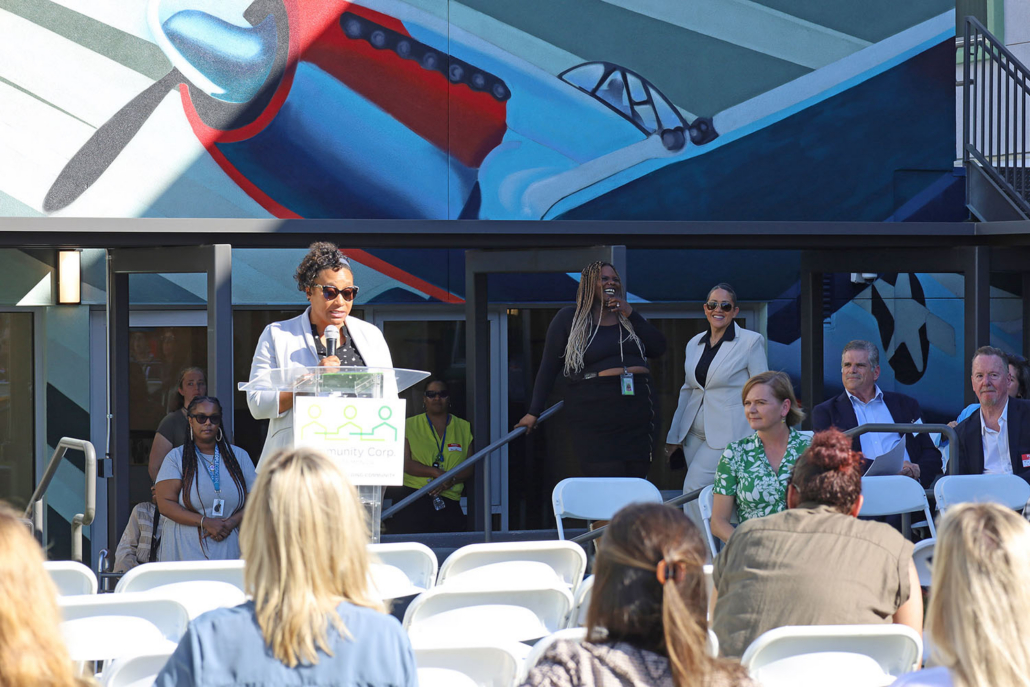 Community leaders and housing partners gathered on February 27 to celebrate the opening of Red Tail Crossing, Westchester’s first 100% affordable housing community developed by Community Corporation of Santa Monica. The new development provides 102 homes for households earning between 15% and 60% of the Area Median Income, including apartments reserved for individuals experiencing homelessness and residents living with disabilities.